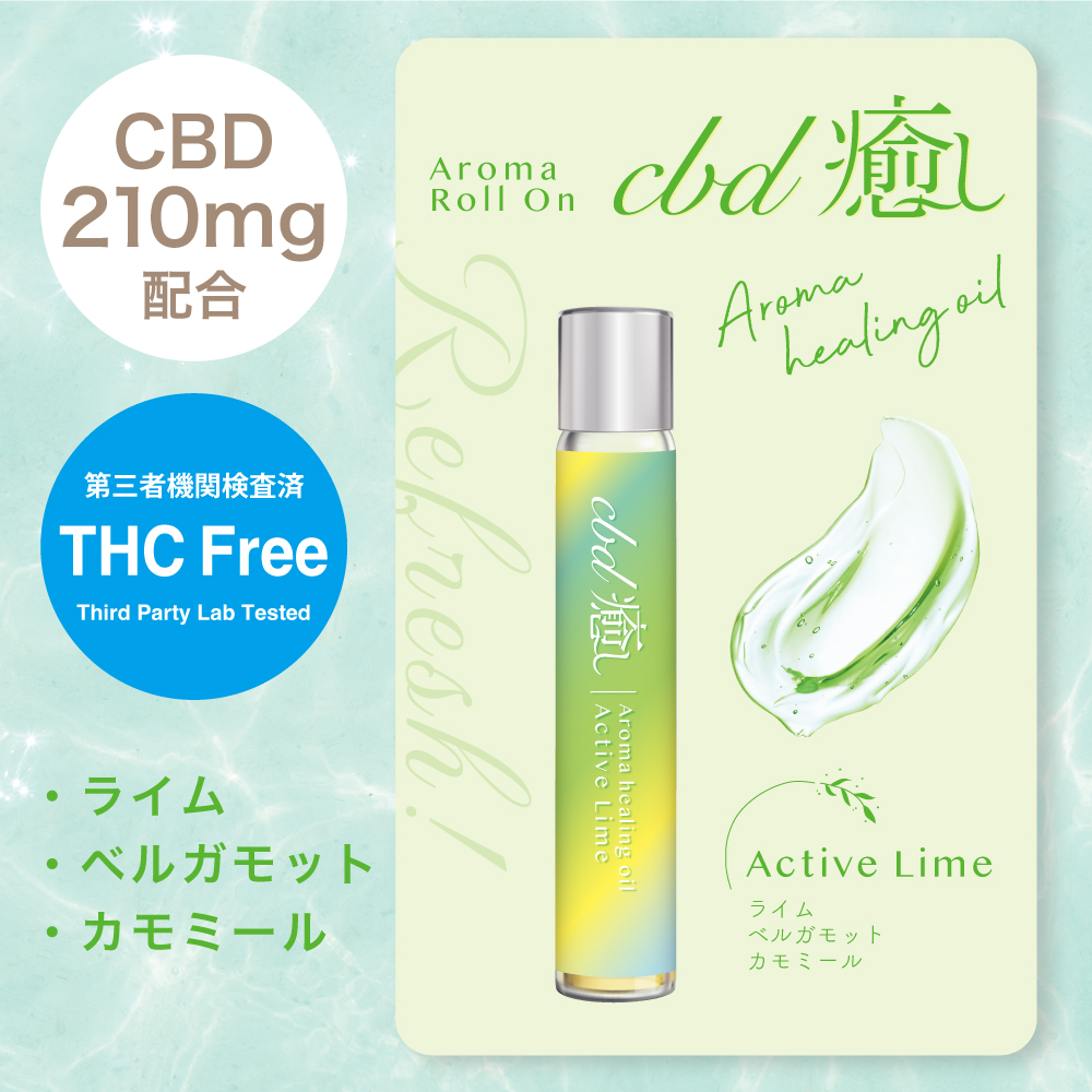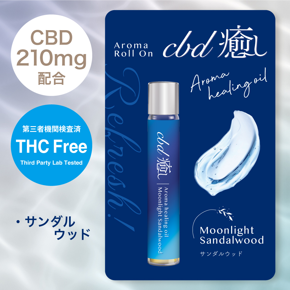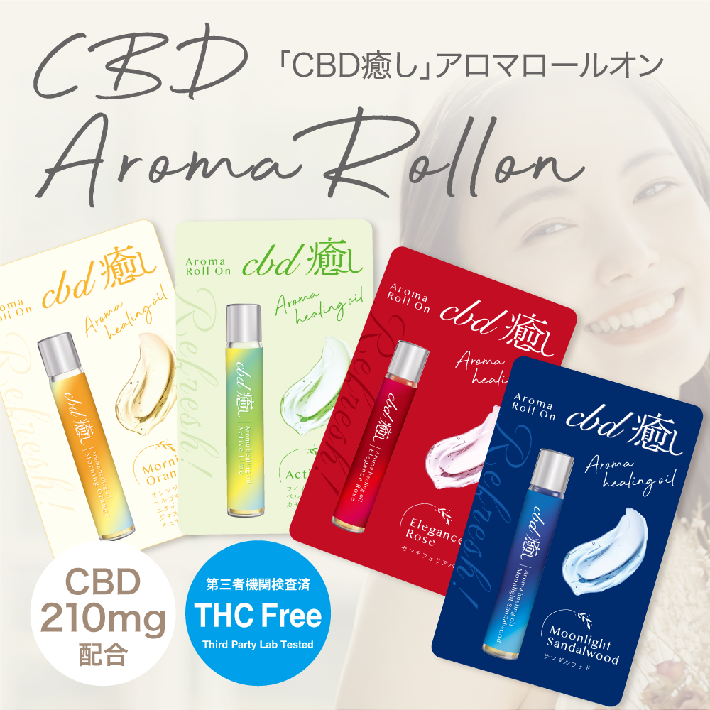 「CBD癒し」アロマロールオンはアンチエイジングに最適なホホバオイルにAromaとCBD(3%)を贅沢にブレンド。ホホバオイルで肌を滑らかにし、CBDで癒し、Aromaで気分を整える。